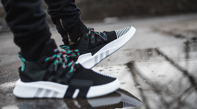 Популярна міська модель Adidas EQT Bask поєднує в собі класику баскетбольного крою та сучасні віяння моди. Сітка, замша та трикотаж утворюють ідеальний баланс повітропроникності, практичності та підтримки. Суцільний комір не сковує рухів, створюючи анатомічну підганку до стопи. Різнобарвна шнурівка створює яскраві контрасти в лаконічному, чорно-білому образі. Функціональна устілка Ortholite одночасно легка та м'яка, розроблена так, щоб підтримувати сухість стоп у процесі виконання активних фізичних навантажень. Антибактеріальне просочення запобігає появі бактерій і неприємного запаху. Як і устілка міжпідошва має пінну структуру, яка успішно справляється із завданням своєчасного гасіння ударів. Підметка з гуми успішно справляється із завданням зчеплення.